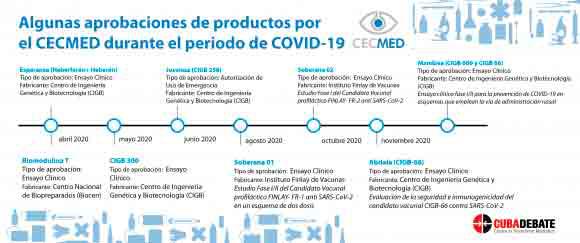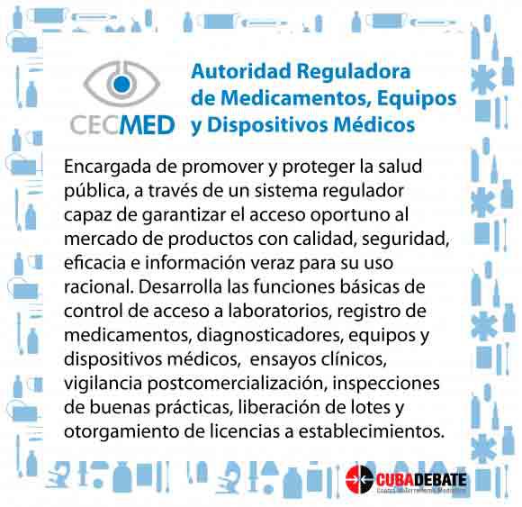 Mora Pascual dijo que el CECMED es un sistema regulador establecido mediante la implementación de seis funciones básicas de la Organización Mundial de la Salud (OMS), como son, el autorizo de los ensayos clínicos de las vacunas, la aprobación de un registro o uso de emergencia, la licencia de establecimientos, la vigilancia post-comercialización, la liberación de lotes y el acceso a laboratorios (LNC).