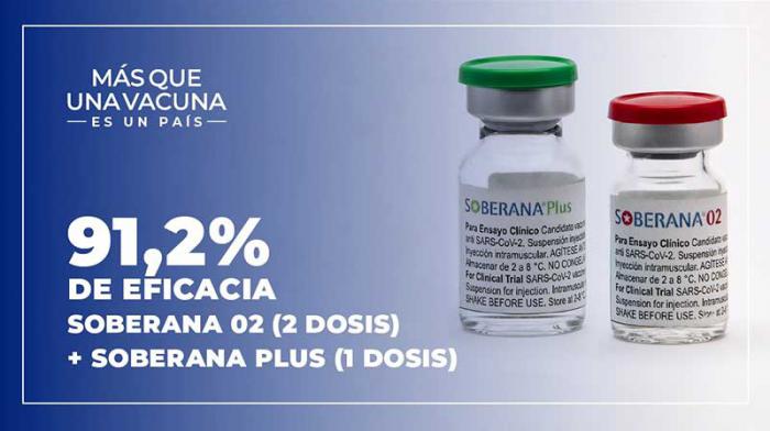 Este jueves, el director general del Instituto Finlay de Vacunas (IFV), Vicente Vérez Bencomo, anunció que Soberana 02 en su esquema de tres dosis con refuerzo de Soberana Plus alcanzó una eficacia de 91,2 % contra la enfermedad sintomática de la COVID-19.