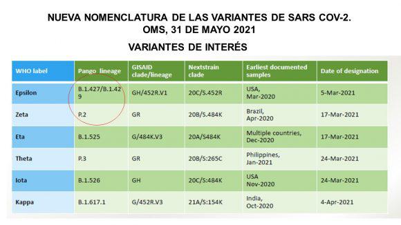 Entre las de variantes de interés detectadas se destacan la de California (epsilon), con circulación en algunas provincias, y la P2 de Brasil, que se detectó y no ha avanzado.