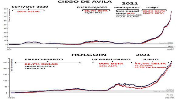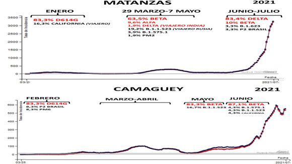 “Más recientemente, entre las muestras procesadas entre el 1ro. y el 7 de julio que provienen de Holguín, Villa Clara y Matanzas, el 64 % es delta. Los porcentajes van cambiando hasta arriba y nos están hablando de que se está imponiendo, por lo menos en esas tres provincias.
