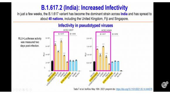 Recordó que con la D614G, un caso positivo infecta a dos o tres, pero la delta infecta al doble, por eso se impone con relativa facilidad. “Es el factor tiempo. Infecta muy rápido, es como una carrera entre cuanto vacunamos y cuanto ella se impone.