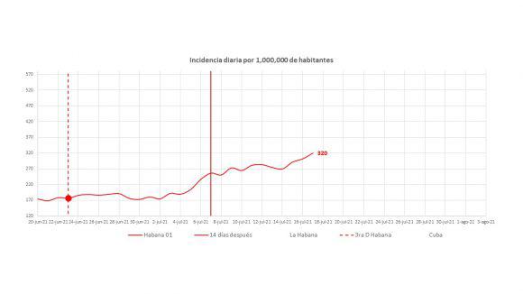 “Esto refleja cómo se comporta la tasa de incidencia diaria en el país. En el país, en todas sus provincias y municipios, se ha producido una pendiente o una tasa de crecimiento mucho mayor de la que está ocurriendo en La Habana, y de la que está ocurriendo dentro de los cuatro municipios que fueron inmunizados primeramente.