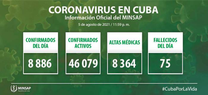 De los 439 mil 899 pacientes diagnosticados con la enfermedad se mantienen ingresados 46 mil 079 de ellos 45 mil 676 con evolución clínica estable. Se acumulan 3 mil 259 fallecidos (75 en el día), letalidad de 0,74% vs 2.13% en el mundo y 2,59% en Las Américas; dos evacuados, 54 retornados a sus países, en el día hubo 8 mil 364 altas, se acumulan 390 mil 505 pacientes recuperados (88,8%). Se atienden en las terapias intensivas 403 pacientes confirmados, de ellos 142 críticos y 261 graves.