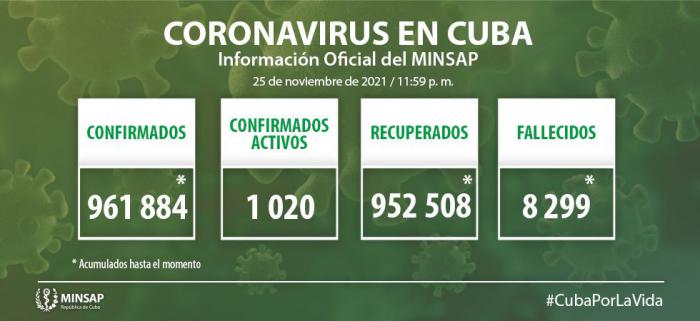 De los 961 mil 884 pacientes diagnosticados con la enfermedad, se mantienen ingresados mil 020, de ellos 990 con evolución clínica estable. Se acumulan 8 mil 299 fallecidos (0 en el día), letalidad de 0,86% vs 2,0% en el Mundo y 2,43% en Las Américas; dos evacuados, 55 retornados a sus países, en el día hubo 302 altas, se acumulan 952 mil 508 pacientes recuperados (99,0%). Se atienden en las terapias intensivas 30 pacientes confirmados de ellos 14 críticos y 16 graves.