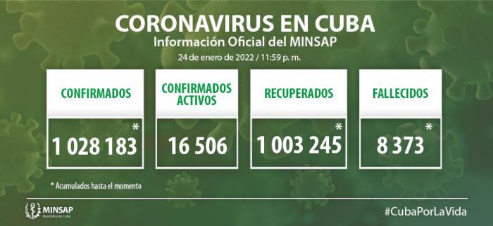 Del millón 028 mil 183 de pacientes diagnosticados con la enfermedad, se mantienen ingresados 16 mil 506, de ellos 16 mil 443 con evolución clínica estable. Se acumulan 8 mil 373 fallecidos (6 en el día), letalidad de 0,82 % vs 1,59 % en el mundo y 1,92 % en Las Américas; dos evacuados y 57 retornados a sus países. En el día hubo 3 mil 409 altas, se acumulan 1 millón 003 mil 245 pacientes recuperados (97,6 %). Se atienden en terapias intensivas 63 pacientes confirmados, de ellos 20 críticos y 43 graves.