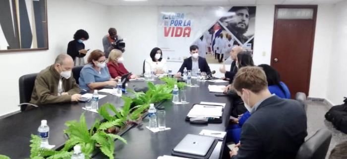 La Dra. Regla Angulo Pardo, viceministra de Salud Pública, agradeció la iniciativa y ratificó que Cuba se suma al llamado de eliminar los obstáculos que dificulten el acceso y la distribución de vacunas contra el SARS-CoV-2 en el mundo.