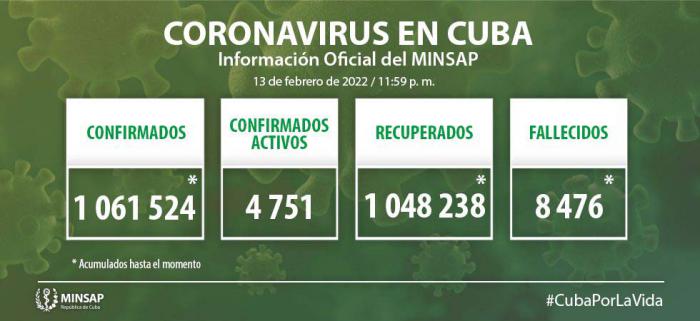 Del millón 061 mil 524 de pacientes diagnosticados con la enfermedad, se mantienen ingresados 4 mil 751 (0,4%), de ellos 4 mil 714 (99,2%) con evolución clínica estable. Se acumulan 8 mil 476 fallecidos (4 en el día), letalidad de 0,80% vs 1,42%en el mundo y 1,79% en Las Américas; dos evacuados y 57 retornados a sus países. En el día hubo 846 altas, se acumulan 1 millón 048 mil 238 pacientes recuperados (98,7%). Se atienden en las terapias intensivas 37 pacientes confirmados de ellos 19 críticos y 18 graves.