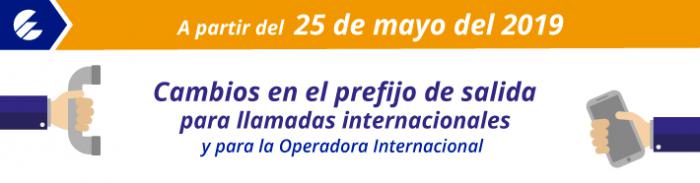 A partir del 25 de mayo del 2019, la Empresa de Telecomunicaciones de Cuba S.A., ETECSA, implementará en todo el país el código de acceso 00 para la Teleselección Internacional y 012 para el acceso a la Operadora Internacional.