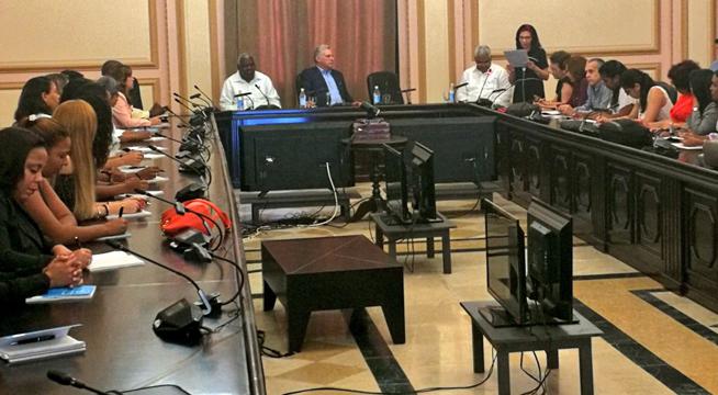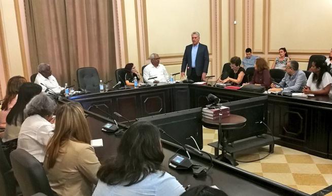 Miguel Díaz-Canel, Presidente de los Consejos de Estado y de Ministros, asistió al acto de inicio del curso intensivo sobre técnicas normativas para diputados y juristas, como apoyo al amplio proceso legislativo que se desarrolla en el país.