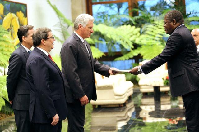 El presidente de los Consejos de Estado y de Ministros, Miguel Díaz-Canel Bermúdez, acompañado por el ministro de Relaciones Exteriores, Bruno Rodríguez Parrilla, recibió este viernes, en audiencia solemne al Excmo Sr. Adán Coromoto Chávez Frías, embajador de la República Bolivariana de Venezuela; al Excmo. Sr. Juan Manuel Corzo Román, embajador de la República de Colombia; al Excmo. Sr. Valentino Longino Mlowola, embajador de la República Unida de Tanzania; al Excmo. Sr. Sidi Mohamed Ould Taleb Amar, embajador de la República Islámica de Mauritania; al Excmo. Sr. Demetrio R. Tuason, embajador de la República de Filipinas; al Excmo. Sr. Ly Djérou Robert, embajador de la República de Costa de Marfil; al Excmo. Sr. Rashid Bayat Mokhtari, embajador de la República Islámica de Irán, reportó la ACN.
