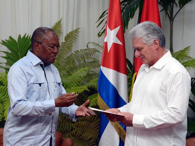 Miguel Díaz-Canel Bermúdez, Presidente de los Consejos de Estado y de Ministros, recibió en la tarde de este jueves al ministro de Relaciones Exteriores de la República de Angola, excelentísimo señor Manuel Domingos Augusto, quien realiza una visita oficial a nuestro país.