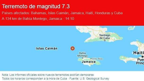 La propia fuente añadió que hasta el momento no se reportan daños materiales ni humanos, y que teniendo en cuenta el mecanismo geológico de la falla de Oriente, “no hay peligro de tsunami para Cuba”, recalcó.