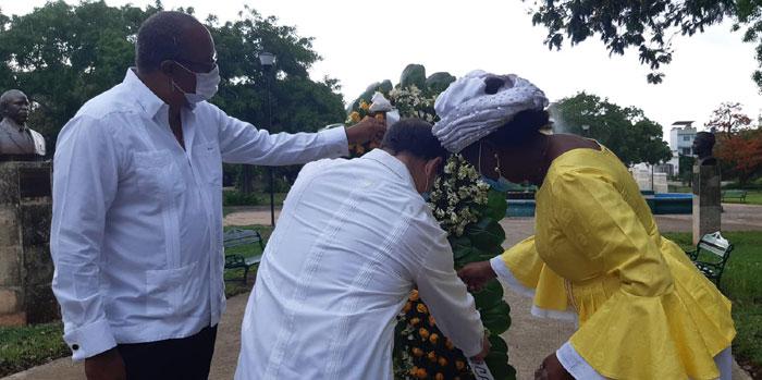 No pudo la lluvia –que lejos de haber sido interpretada como obstáculo, fue asumida como buen signo de prosperidad–, amilanar el espíritu que reunió en la mañana de este 25 de mayo a una representación del cuerpo diplomático africano en Cuba para celebrar el Día de África en el Parque de los Próceres Africanos, en el capitalino municipio de Playa.
