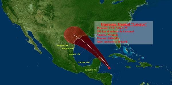 Por otra parte, el Instituto de Meteorología también dio a conocer, en la noche de este viernes que se han incrementado las áreas de lluvias en las cercanías del centro de circulación de la depresión tropical Catorce, mostrando signos de una mejor organización. Un avión de reconocimiento determinó que ahora posee vientos máximos sostenidos de 65 kilómetros por hora, con rachas superiores y su presión central disminuyó hasta 1003 hectoPascal, por lo que se convierte en la tormenta tropical Marco.