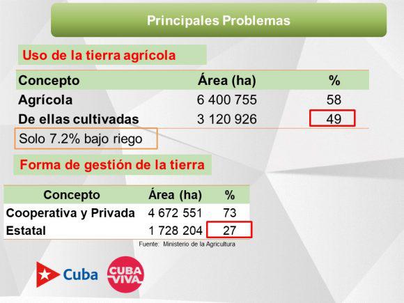 En cuanto a la gestión de la tierra, especificó que el sector cooperativo y privado agrupa unas 4 672 551 hectáreas y el estatal 1 728 204.