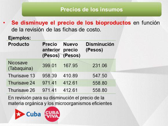 La titular acotó que continúa revisándose para su disminución el precio de la materia orgánica y los microorganismos eficientes.