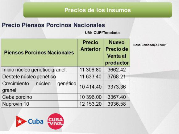 Otra de las medidas implica la reducción de los precios de los piensos nacionales para la producción porcina en un 60 %. “El país necesita incrementar la producción porcina, que hoy está insatisfecha”.
