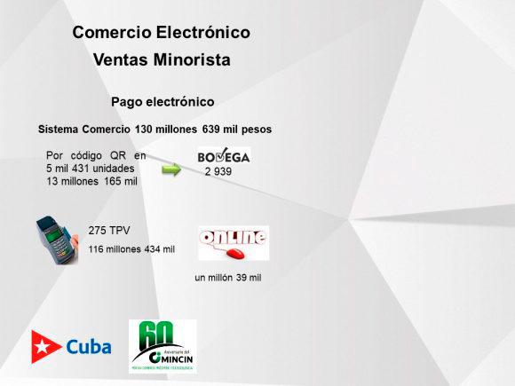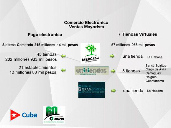 Así mismo destacó que hoy existen once tiendas virtuales, tanto para el comercio minorista como mayorista. En el caso de las ventas mayoristas se han vendido en el primer trimestre más de 215 millones de pesos, concentradas en la relación de los mercados mayoristas con las formas no estatales de gestión.