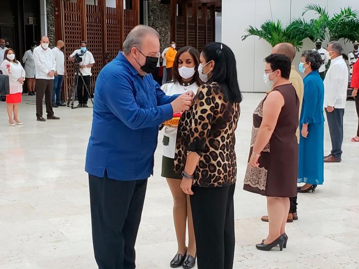 En la ceremonia, el mandatario cubano condecoró con el Título Honorífico de Héroe de la República de Cuba y la Orden 17 de Mayo a valiosos compañeros del sector cooperativo y campesino del país.