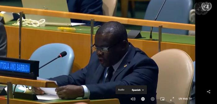 El representante de Antigua y Barbuda comenzó su intervención haciendo un llamado a los Estados Unidos a terminar el bloqueo comercial y financiero contra Cuba.