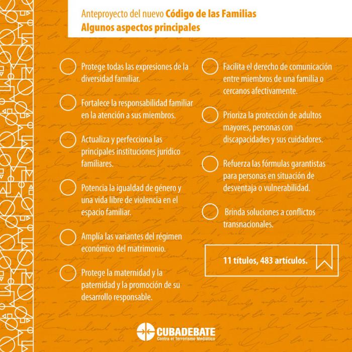 La versión 22 del anteproyecto del Código de las Familias fue publicada en esta jornada. El texto, coherente con la Constitución de la República, desarrolla las diversas instituciones jurídico-familiares en correspondencia con el carácter humanista del proceso revolucionario, los resultados de la ciencia del Derecho de Familia, de la práctica judicial en Cuba y los avances en la legislación de otros países.