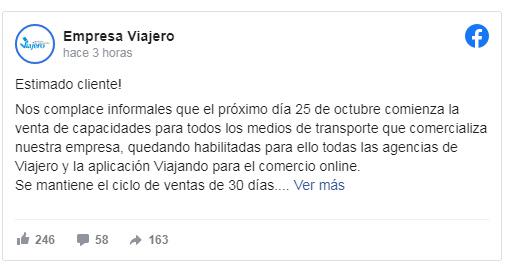 En otro momento, Fredy Álvarez León, director general de la Empresa Viajeros anunció que las ventas de pasajes iniciarán el día 25 de octubre desde las 8.30 a.m., a través de la apk Viajando y por las agencias, en este caso se dividirán las ventas.