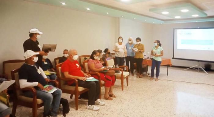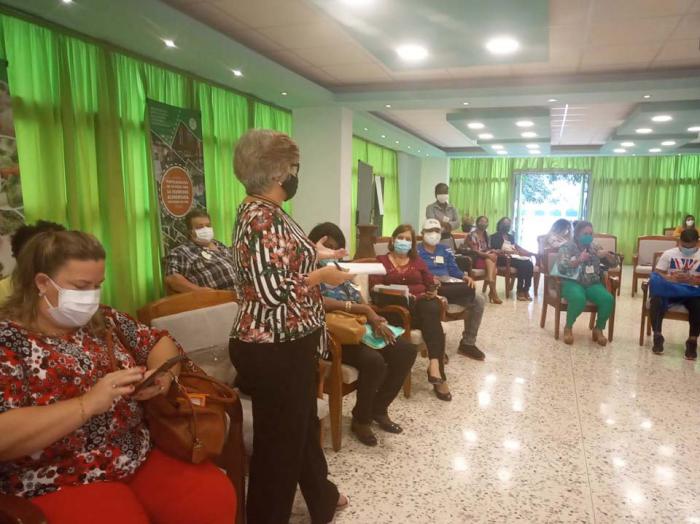 Mujeres y hombres que coordinan en las provincias y municipios SAS Cuba y puntos focales de género provinciales y municipales, directivas de la FMC y el MINAG intercambian con facilitadores de la Organización de Naciones Unidas para la Alimentación y la Agricultura (FAO) y el Programa de Naciones Unidas para el Desarrollo (PNUD) acerca de las dimensiones del enfoque de género en el desarrollo, el empoderamiento femenino, incorporación al empleo en el sector agropecuario, desigualdades y cómo la eliminacion de las brechas sociales y económicas tributarían a la justicia social.