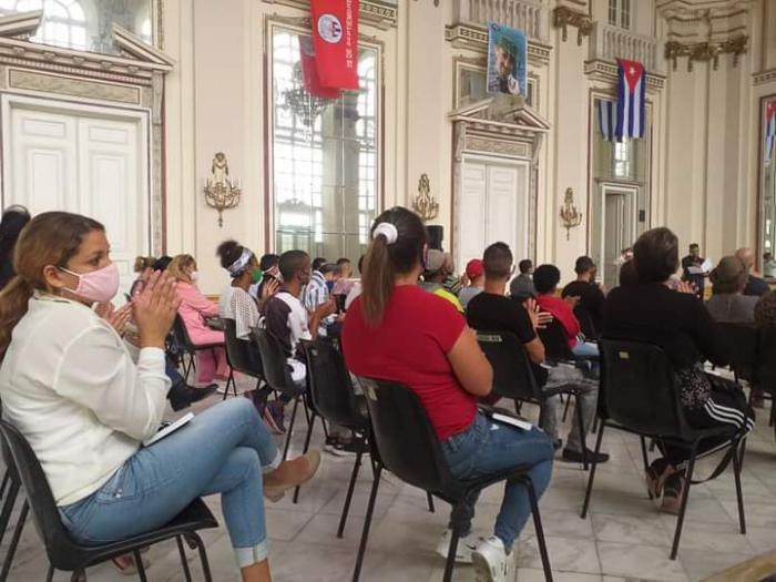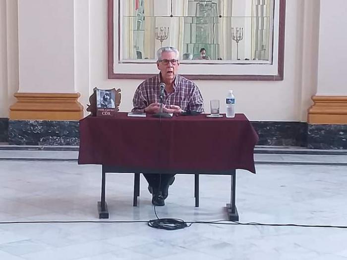 A solo unos metros del balcón en la terraza norte del antiguo Palacio Presidencial, hoy Museo de la Revolución, desde el cual el Comandante en Jefe Fidel Castro Ruz fundó los Comités de Defensa de la Revolución (CDR) el 28 de septiembre de 1960, se realizó la presentación del libro Fidel Castro y los CDR por el licenciado Jorge Lezcano Pérez.