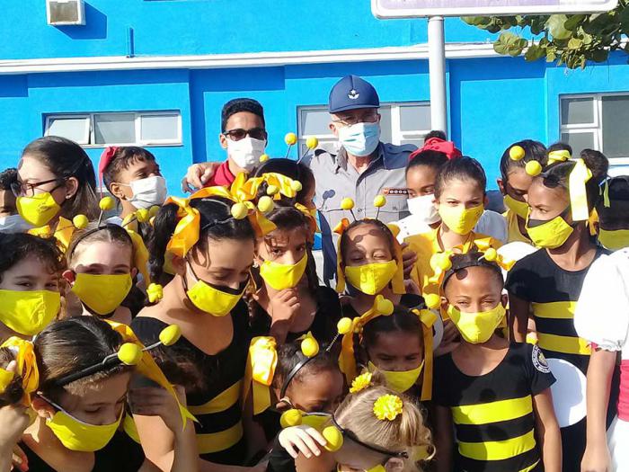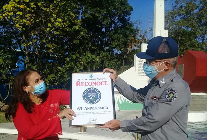 La segunda secretaria del Comité Nacional de la Federación de Mujeres Cubanas ( FMC), Rosmery Santiesteban, y Dalberto González, miembro del Buró Nacional de la Unión de Jóvenes Comunistas ( UJC) entregaron reconocimientos a la PNR.