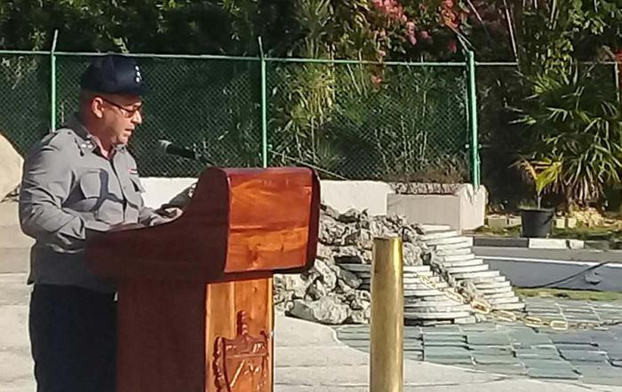 El Primer Coronel Eddy Sierra Áreas, segundo jefe de la Dirección General de la PNR, dio lectura a la carta de felicitación enviada por el General de Brigada Oscar Callejas Valcárcel, jefe de la Policía Nacional Revolucionaria a jefes, oficiales, combatientes, trabajadores civiles y auxiliares con motivo del aniversario.