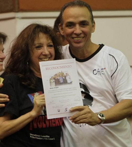 Alicia asumió con decisión e inigualable valentía la dirección del Comité Internacional por la Libertad de los Cinco en Estados Unidos, y logró que sindicalistas, líderes religiosos, congresistas, juristas, intelectuales, actores y artistas se sumaran a la campaña por la liberación de los antiterroristas cubanos Gerardo Hernández Nordelo, Ramón Labañino Salazar, Antonio Guerrero Rodríguez, Fernando González Llort y René González Sehwerert.