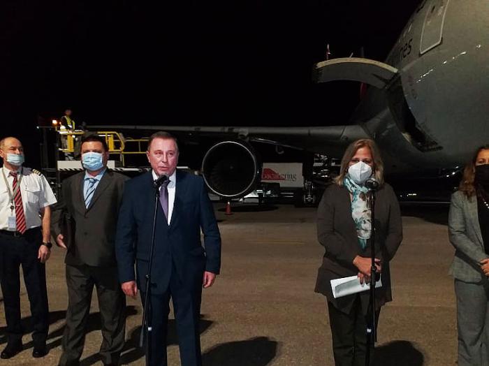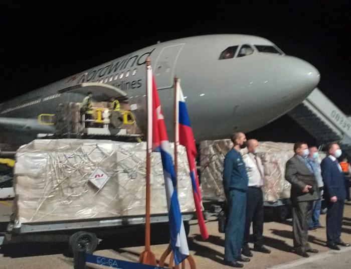 En la loza del aeropuerto internacional José Martí de La Habana, acudieron al recibimiento del cargamento solidario Ana Teresita González Fraga, viceministra primera del Ministerio de Comercio Exterior y la Inversión Extranjera ( MINCEX), y el excelentísimo señor Andrey Guskov, embajador extraordinario y plenipotenciario de la Federación de Rusia en Cuba, quien expresó que desde el pasado 31 de diciembre hasta este último donativo, Rusia ha enviado 83 toneladas de medicamentos, trajes de protección multiusos y jeringuillas, para que le sirvan de fuerte apoyo a los especialistas cubanos que luchan contra la pandemia de la COVID-19, en complicadas condiciones por el Bloqueo Comercial y Financiero de Estados Unidos. El embajador de la Federación de Rusia reafirmó el apoyo de su país a la Mayor de las Antillas, enfatizando que ya en estos momentos está listo para zarpar de Rusia hacia Cuba un carguero llevando más de 19 000 toneladas de trigo.