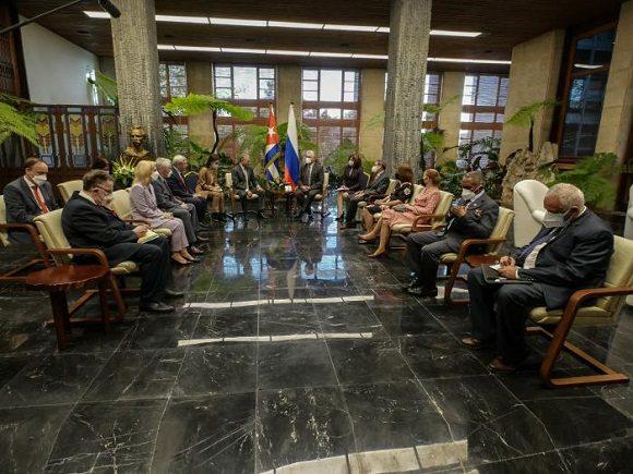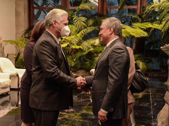 El Primer Secretario del Comité Central del Partido y presidente de la República, Miguel Díaz-Canel Bermúdez, sostuvo un encuentro con el excelentísimo señor Viacheslav Volodin, presidente de la Duma Estatal de la Asamblea Federal de la Federación de Rusia, quien realiza una visita a Cuba.