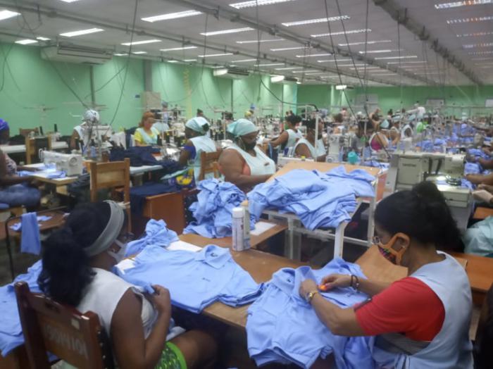 A su vez, tienen convenios con el sector no estatal, lo que les permitió no parar las máquinas en momentos en que no disponían de tejidos propios.