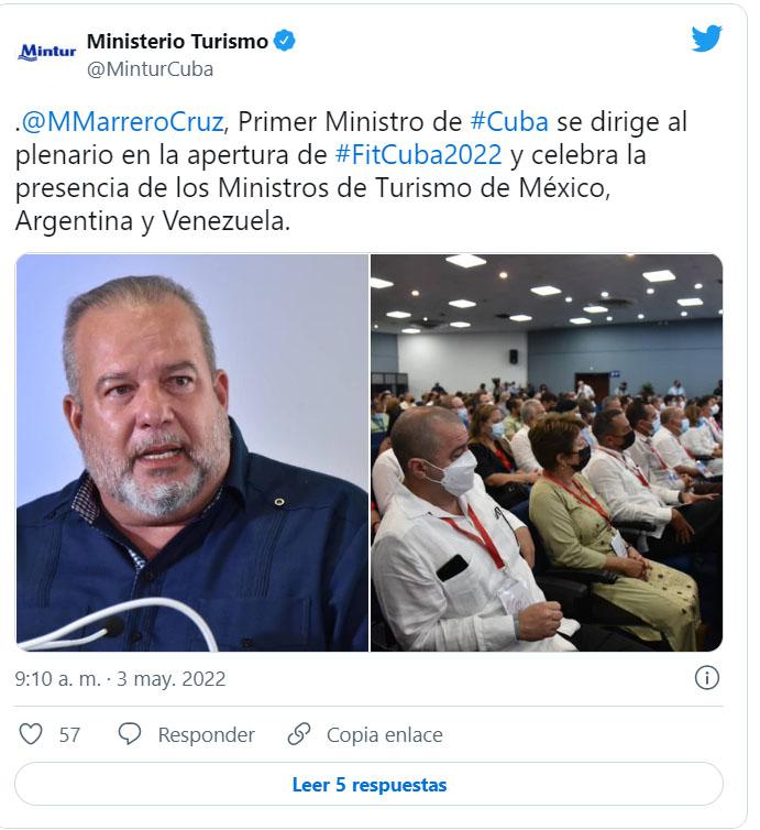 Marrero Cruz saludó la presencia de Venezuela, México y Argentina, naciones a la que nos unen lazos históricos, y cuyos ministros de Turismo estaban presentes en la inauguración. “Es un placer poder compartir con la familia del turismo, tras dos años detenidos por la COVID-19”, dijo.
