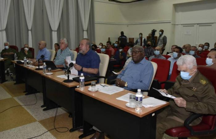 Acompañan al Presidente, el Primer ministro, Manuel Marrero Cruz; el vicepresidente Salvador Valdés Mesa, y el secretario de Organización del Partido Comunista de Cuba, doctor Roberto Morales Ojeda.
