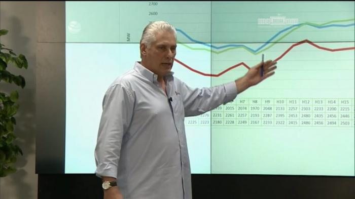 Díaz-Canel señaló que las causas fundamentales de la actual situación son roturas y falta de mantenimiento acumulado debido a los problemas de financiamiento, sobre todo asociados a las limitaciones impuestas por el bloqueo.