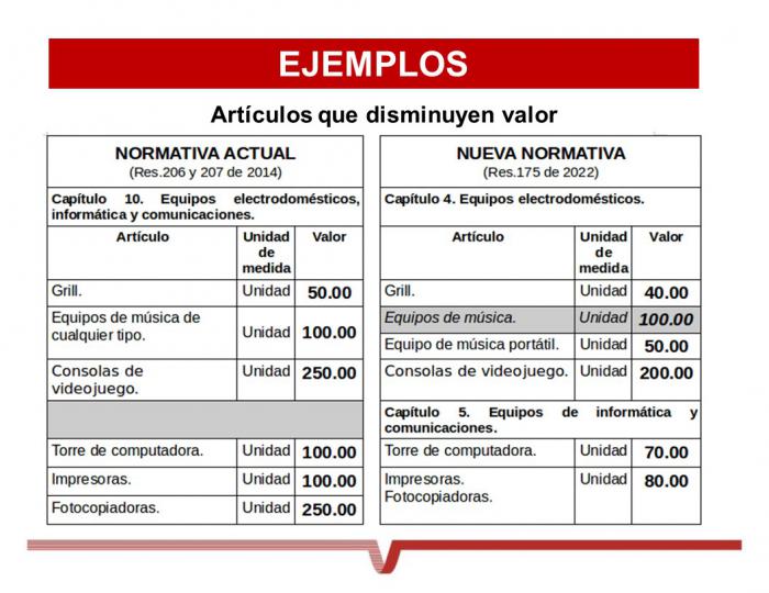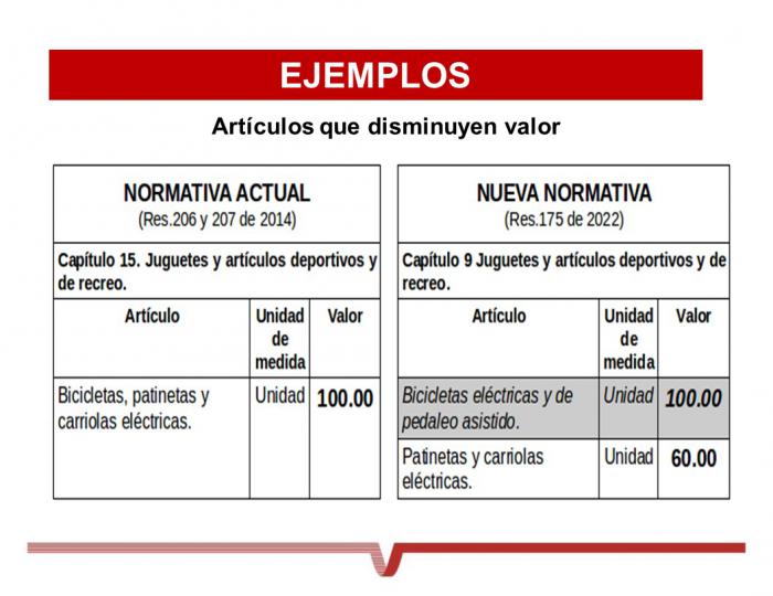 Como otra de las novedades, señaló que se incluyen al método de “valor-peso” artículos de ferretería, partes y piezas de vehículos, útiles del hogar, así como las piezas de instrumentos musicales, entre otros, para los cuales se emplea la misma regla prevista para las misceláneas.