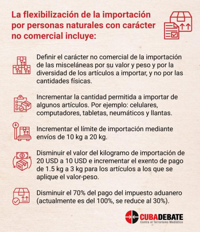 Esta medida fue anunciada recientemente por el ministro de Economía, Alejandro Gil Fernández, en la Asamblea Nacional, donde informó sobre la flexibilización de la importación por personas naturales con carácter no comercial.