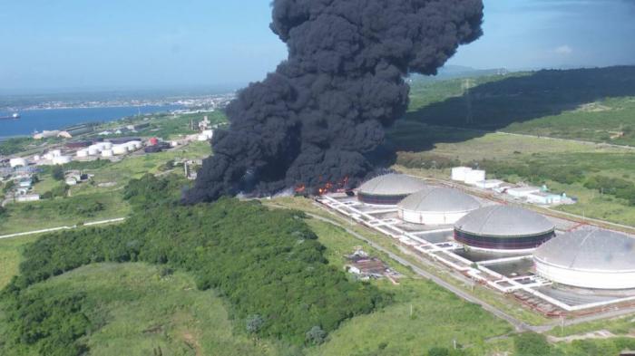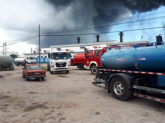En imágenes, enfrentamiento al incendio en tanques de combustibles en Matanzas