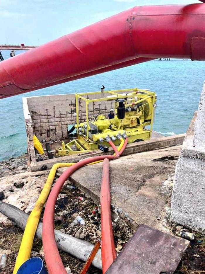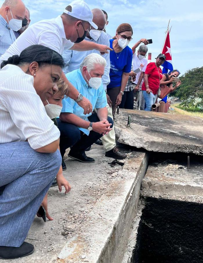 La cuenta de Twitter de la Presidencia indicó que el mandatario cubano visitó el sitio donde se encuentra la bomba de agua dispuesta por los venezolanos y les transmitió el agradecimiento a estos trabajadores por su solidaridad con el pueblo cubano.