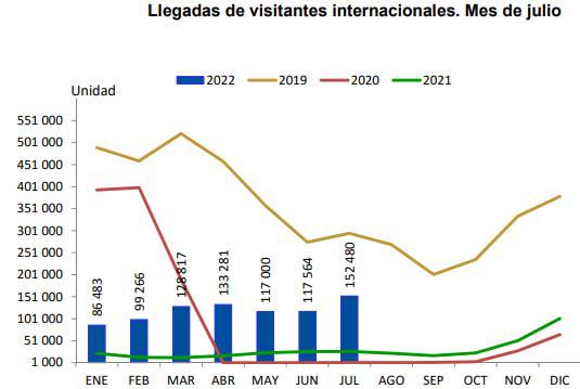En números generales, durante los primeros siete meses del año visitaron la mayor de las Antillas 1 200 580 viajeros, un crecimiento del 552.3% con respecto a la misma etapa de 2021.