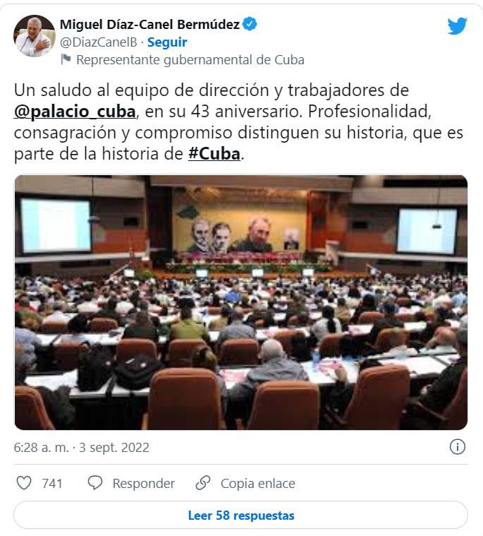 En su cuenta de Twitter el mandatario cubano aseguró que la institución a lo largo de su historia ha mantenido su profesionalidad, consagración y compromiso acogiendo los eventos más importantes que se realizan en el país.