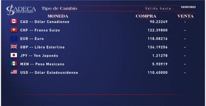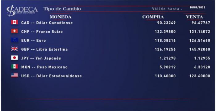 Tasas vigentes en el mercado cambiario cubano este 10 de septiembre