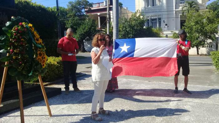En la céntrica Avenida de los Presidentes, en la capital cubana, donde se erige una estatua de Allende, fue colocada una ofrenda floral a nombre de la comunidad chilena residente en Cuba.