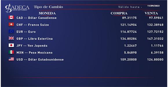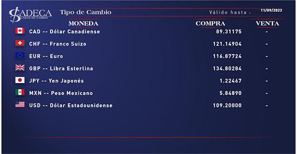 Con el objetivo de mantener a los lectores informados, compartimos las tasas de cambio para diferentes divisas extranjeras vigentes este lunes 12 de septiembre en el mercado cambiario del país.