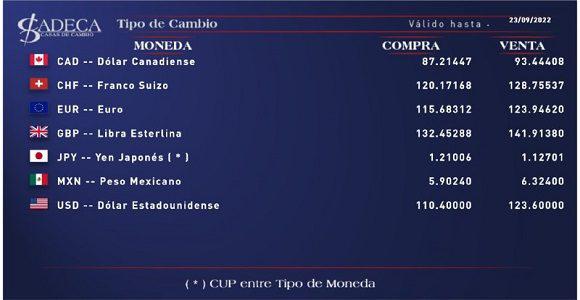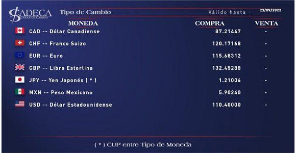 Tasas vigentes en el mercado cambiario cubano este 23 de septiembre