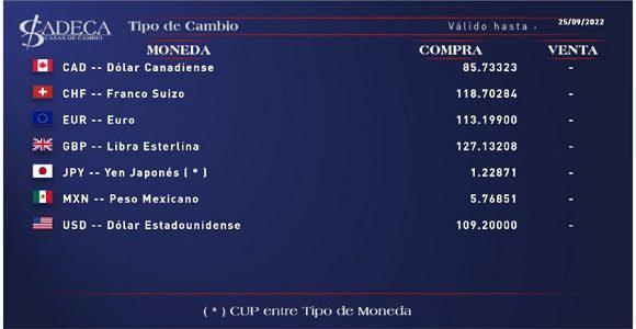 Tasas vigentes en el mercado cambiario cubano este domingo 25 de septiembre