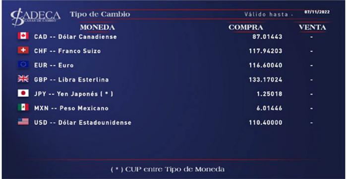 Tasas vigentes en el mercado cambiario cubano este lunes 7 de noviembre