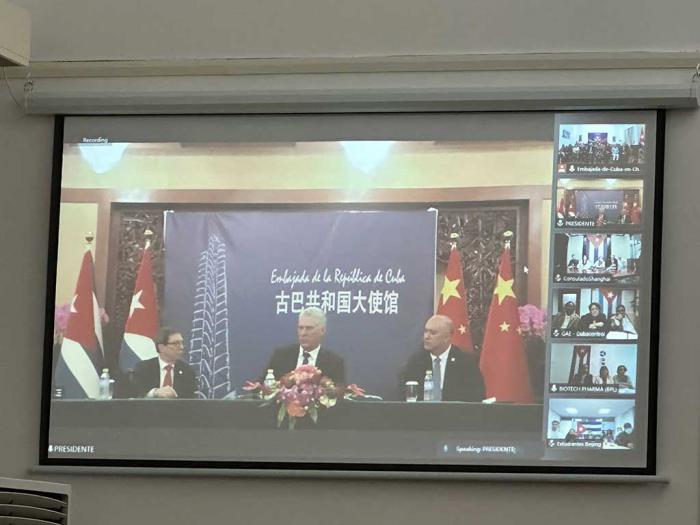 El presidente Miguel Díaz-Canel sostuvo hoy un encuentro por videoconferencia con los funcionarios de la misión estatal y estudiantes de Cuba en China, donde destacó la importancia de sus labores para los vínculos bilaterales y el desarrollo de la Isla.